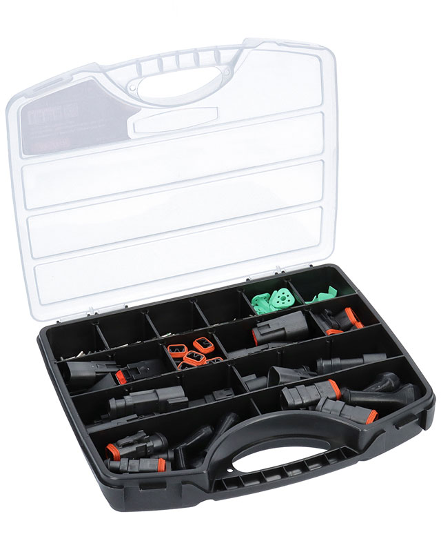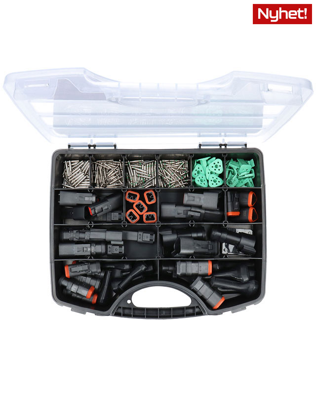 AS DT-300 innehåller ca 300 delar med komponenter till 2-3 poliga DT-kontakter.