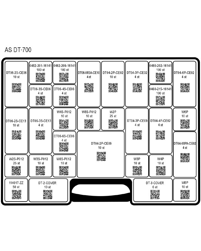 Innehåller komponenter till 2-8 poliga DT-kontakter